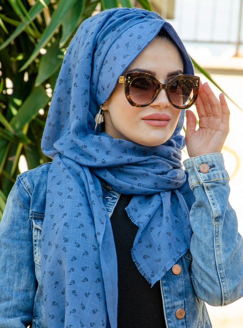 AİŞE TESETTÜR İndigo Çiçekli Şapkalı Şal