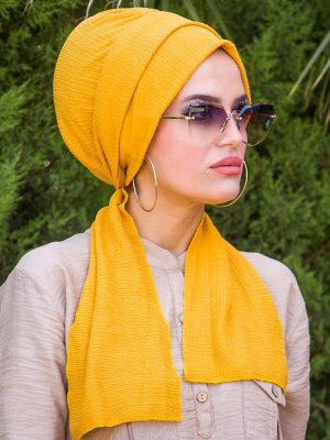 AİŞE TESETTÜR Hardal Hazır Atkılı Bone