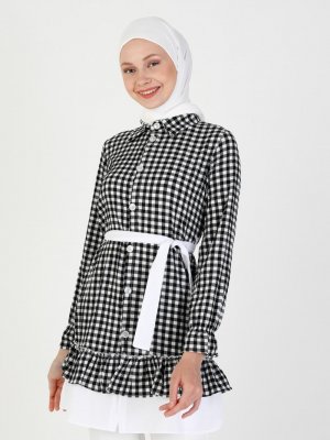ENSANUR MODA Siyah Pötikare Desenli Tunik