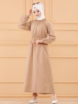 Tofisa Vizon Beli Lastikli Elbise