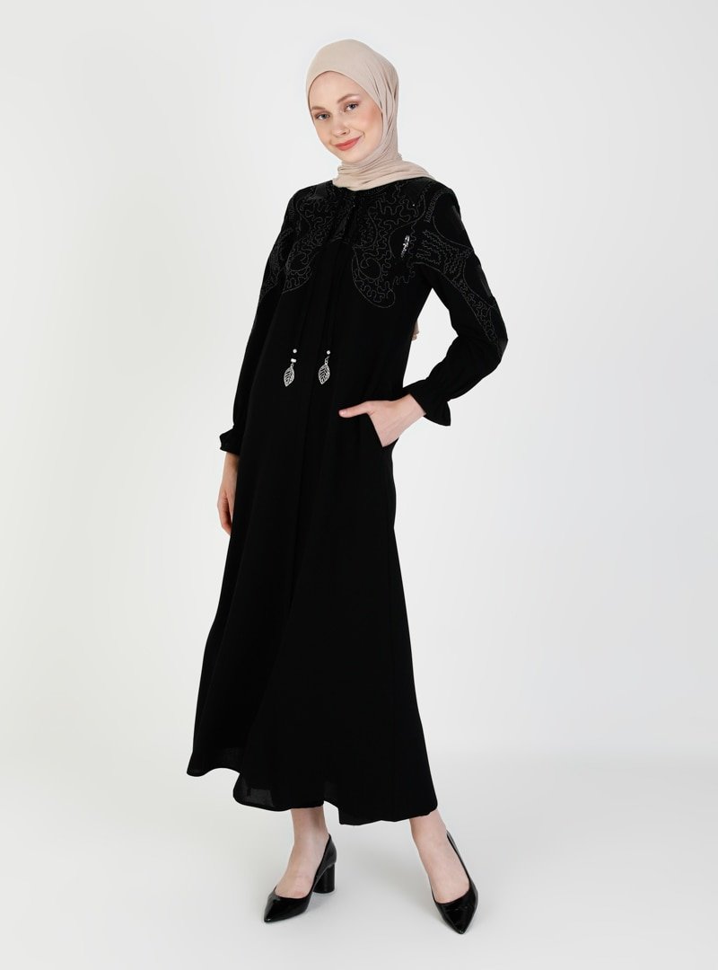 ŞAHİN FERACE Siyah Boydan Fermuarlı Ferace