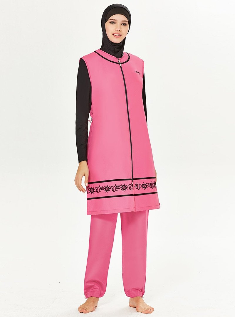 MOSSTA Fuşya Kolu Likralı Nakışlı Mayo