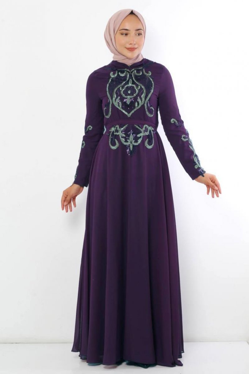MISSVALLE Mor Şifonlu Pul Payetli Elbise