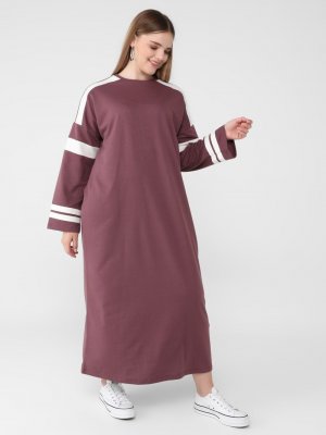 Alia Mistik Mor Büyük Beden Garnili Doğal Kumaşlı Spor Elbise