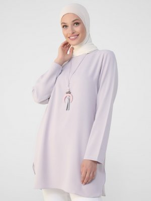 Refka Antik Lila Kolye Detaylı Yanları Yırtmaçlı Aerobin Tunik