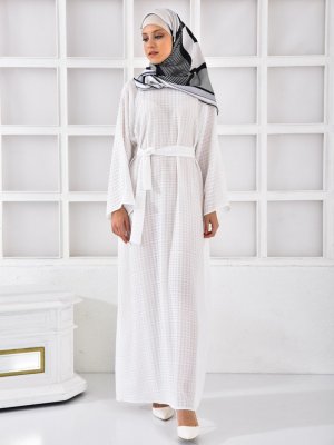Tuncay Ekru Kendinden Desenli Gofreli Elbise