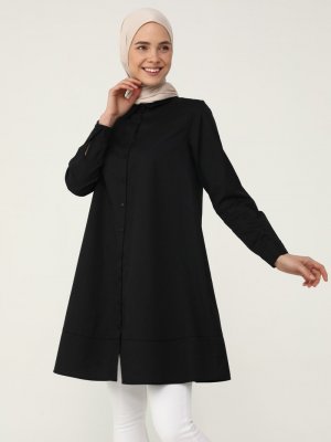 Refka Siyah Oxford Kumaştan Düğmeli Mevlana Gömlek