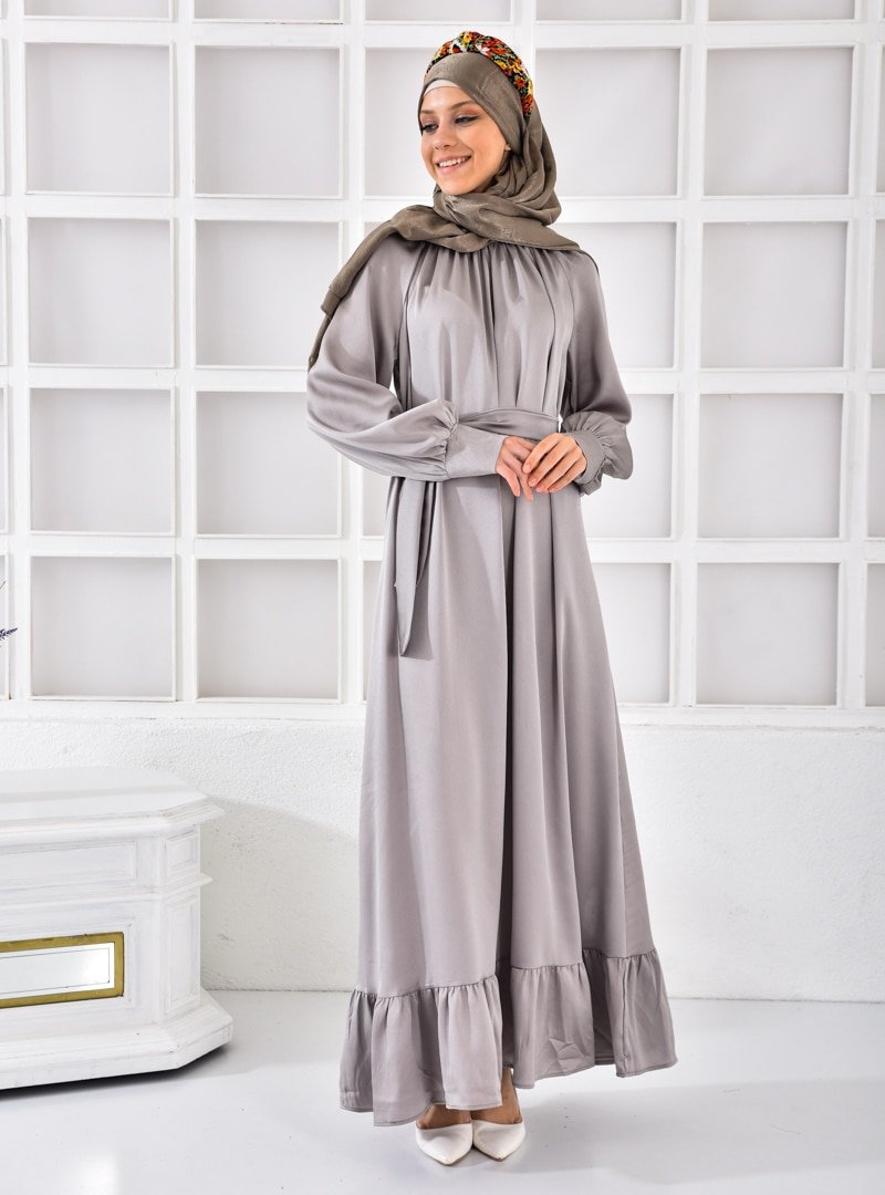 Tuncay Vizon Saten Kumaş Reglan Kol Fırfırlı Elbise