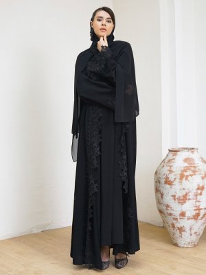 AL SHEIKHA Siyah Güpür İşlemeli Abiye Ferace