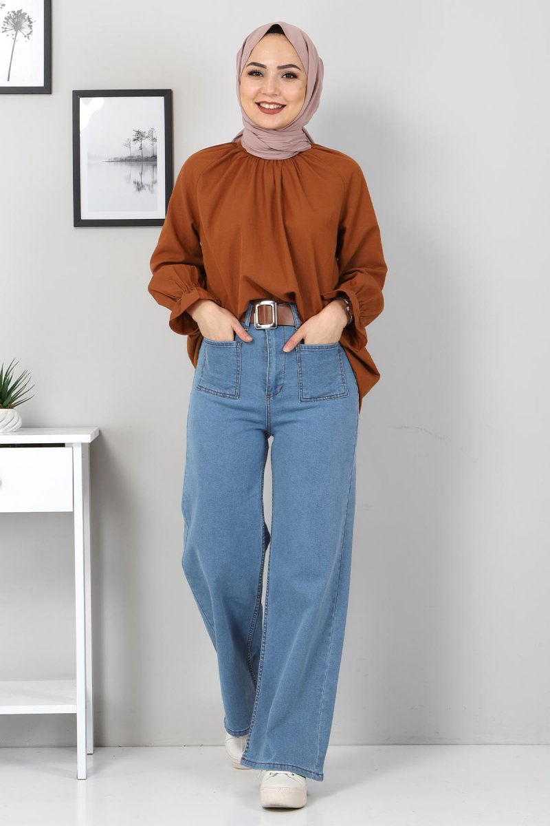 Tesettür Dünyası Mavi Ön Cep Detaylı Kot Pantolon