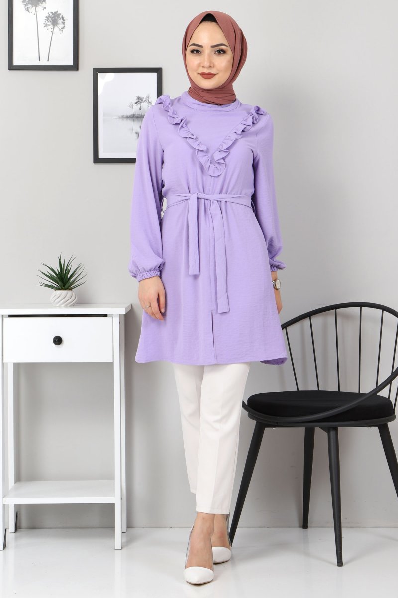 Tesettür Dünyası Lila Önü Fırfırlı Tunik