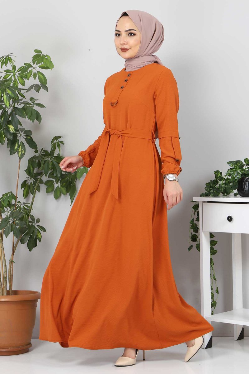 Tesettür Dünyası Kiremit Kolları Düğme Detaylı Elbise