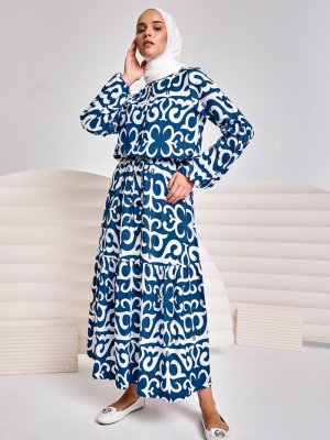 İnşirah Mavi Beyaz Magic Elbise