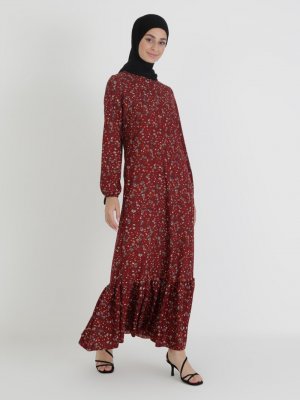 Moda Zenis Bordo Çiçek Desenli Elbise