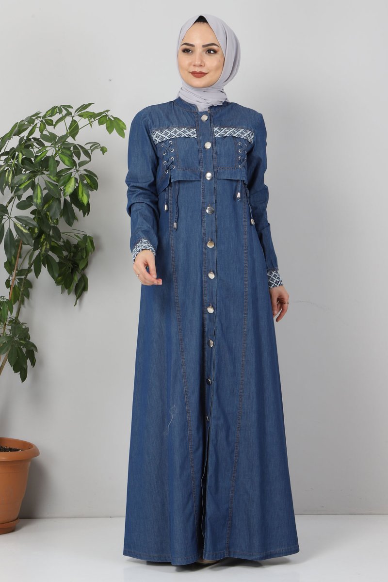 MISSVALLE Koyu Mavi Nakış Detay Kot Ferace