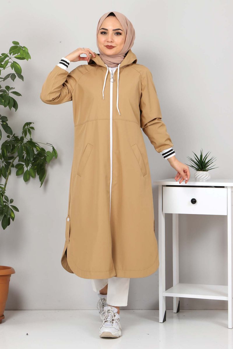 Tesettür Dünyası Camel Ribanalı Trençkot