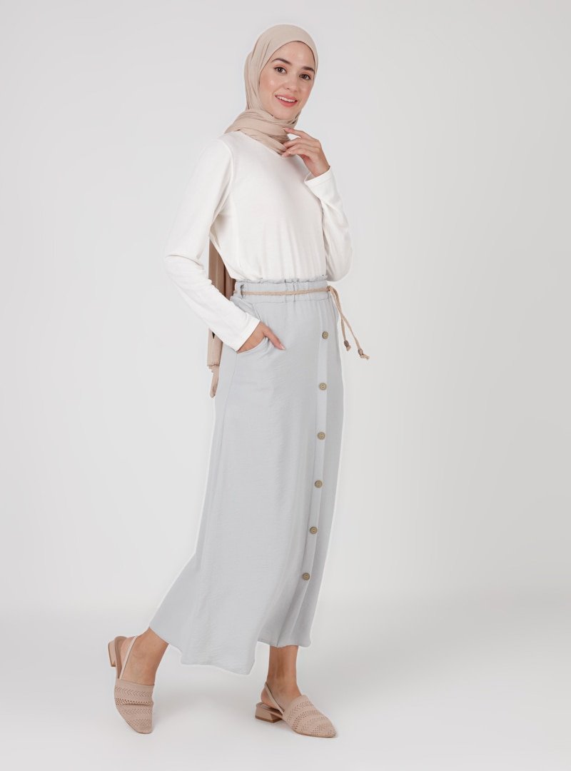 BÜRÜN Gri Düğme Detaylı Etek