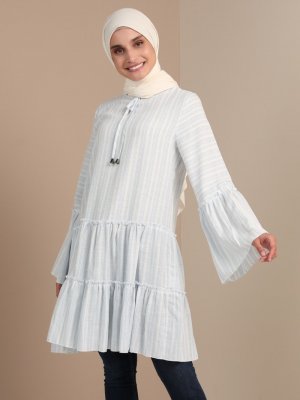 Tavin Açık Mavi Pamuk Keten İspanyol Kol Tunik