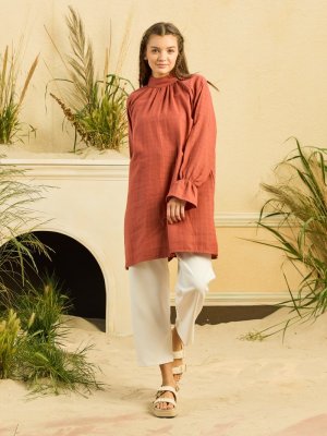 Ceylan Otantik Kiremit Müslin Büzgü Detaylı Tunik