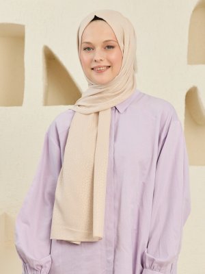 Burden İpek Bej Soft Cottony Benekli Düz Şal