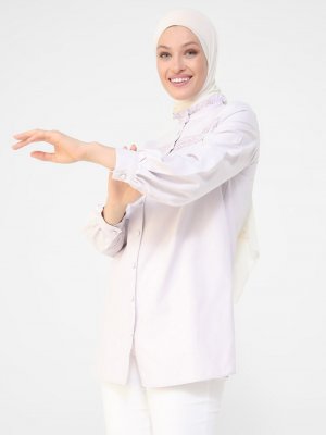 Refka Açık Lila Yakası Fırfırlı Nakış Detaylı Tunik