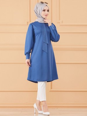 Tofisa İndigo Yaka Detaylı Tunik