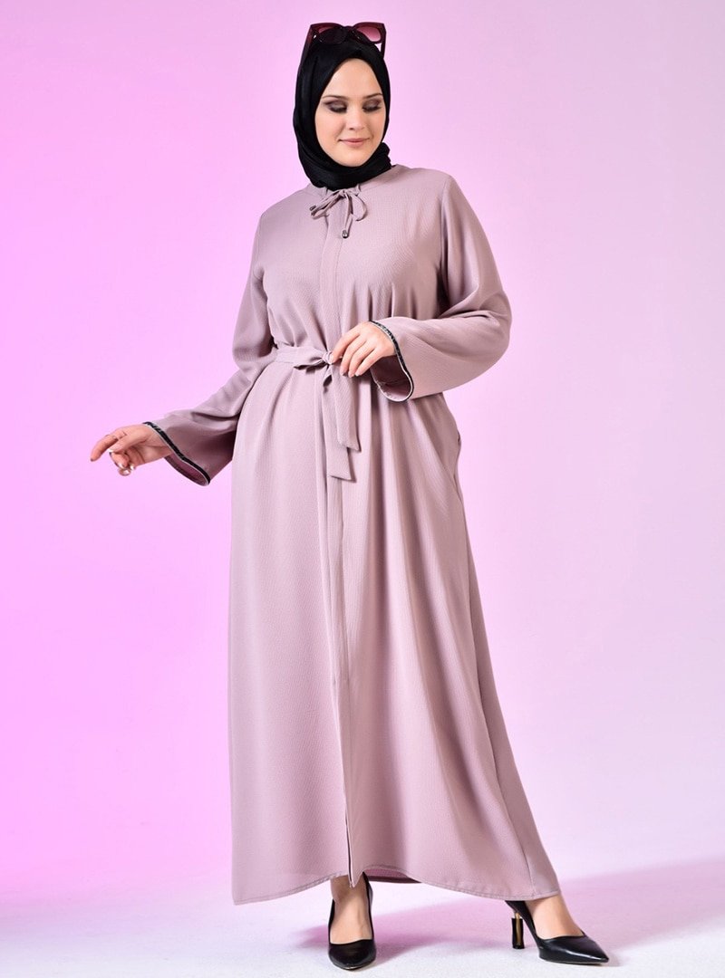 Ferace Pudra Yakası Bağcıklı Pardesü