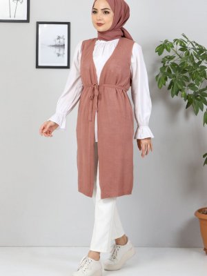 Tesettür Dünyası Gül Kurusu Beli Bağcıklı Triko Yelek