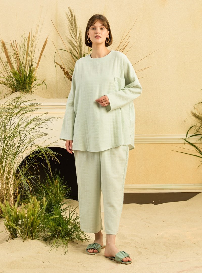 Ceylan Otantik Su Yeşili Müslin Salaş Pantolon