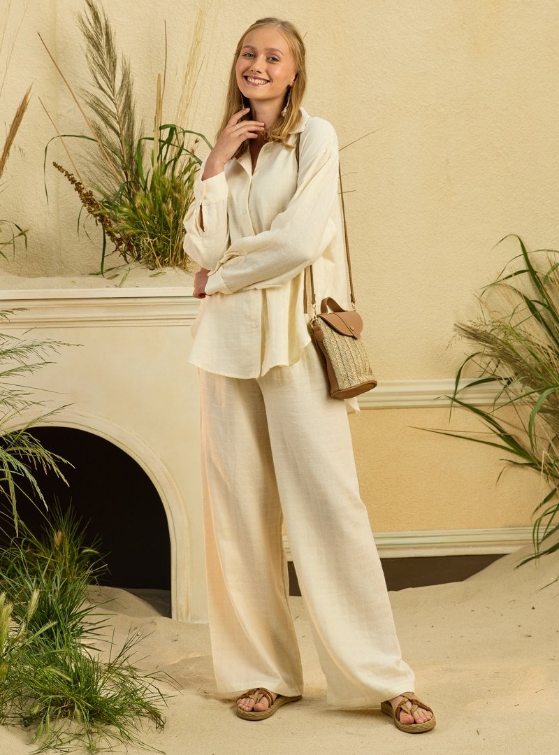 Ceylan Otantik Krem Müslin Uzun Pantolon