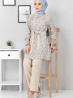 Tesettür Dünyası Mavi Desenli İkili Takım