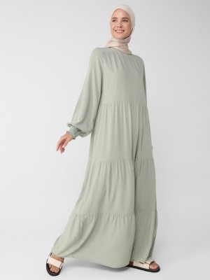 Benin Kekik Doğal Kumaşlı Kolları Gipeli Elbise