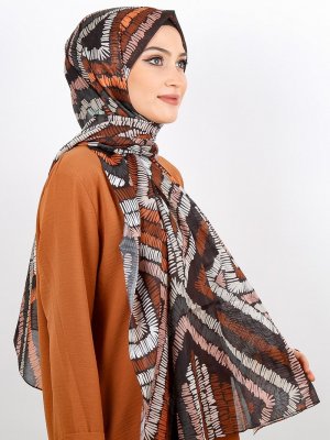 Renkli Butik Eşarp Kahverengi Desenli Pamuk Şal