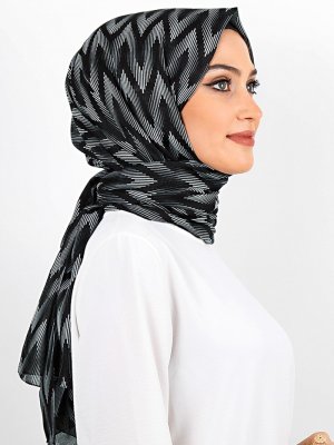 Renkli Butik Eşarp Siyah Beyaz Desenli Pamuk Şal