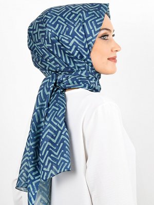 Renkli Butik Eşarp Mavi Desenli Pamuk Şal