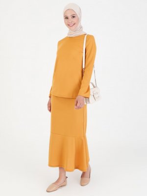 SULTANE Hardal Sarı Bluz&Etek İkili Takım
