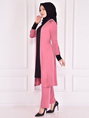 AYŞE MELEK TASARIM Pudra Fularlı Tunik&Pantolon İkili Abiye Takım