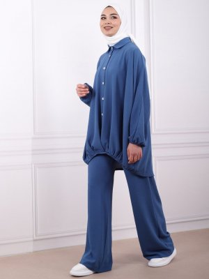 Savewell Woman İndigo Önü Pileli Royal Tunik&Pantolon İkili Takım