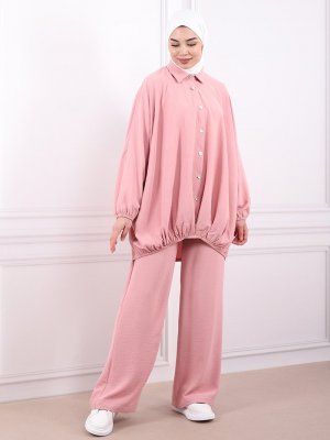 Savewell Woman Pembe Önü Pileli Royal Tunik&Pantolon İkili Takım