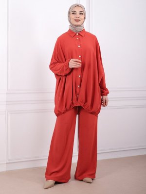 Savewell Woman Nar Çiçeği Önü Pileli Royal Tunik&Pantolon İkili Takım