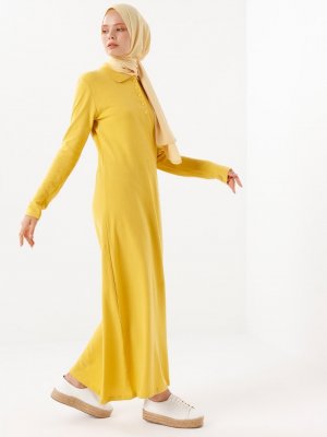Phull Sarı Polo Yaka Elbise