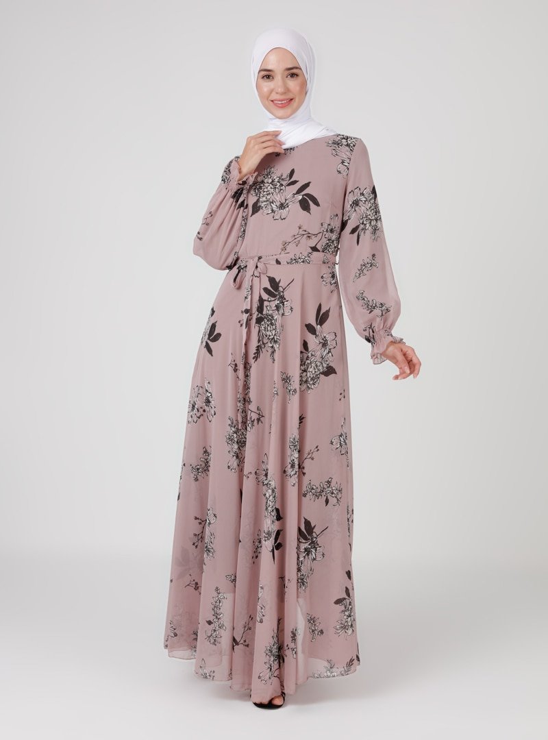 BÜRÜN Vizon Çiçek Desenli Elbise