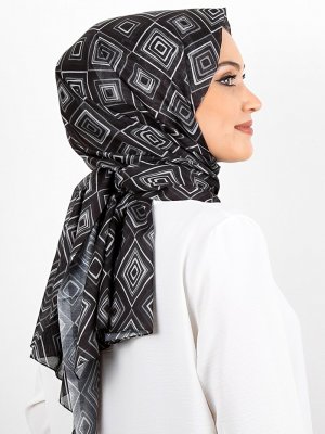 Renkli Butik Eşarp Siyah Desenli Pamuk Şal