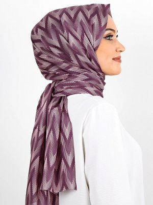 Renkli Butik Eşarp Mor Desenli Pamuk Şal