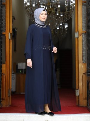 Amine Hüma Lacivert Ferda Abiye Elbise