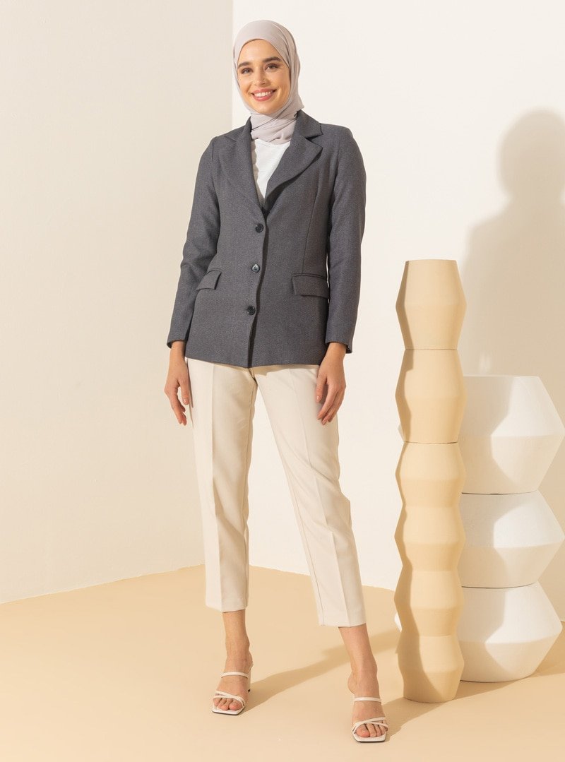 SENSE Gri Düğme Detaylı Blazer Ceket