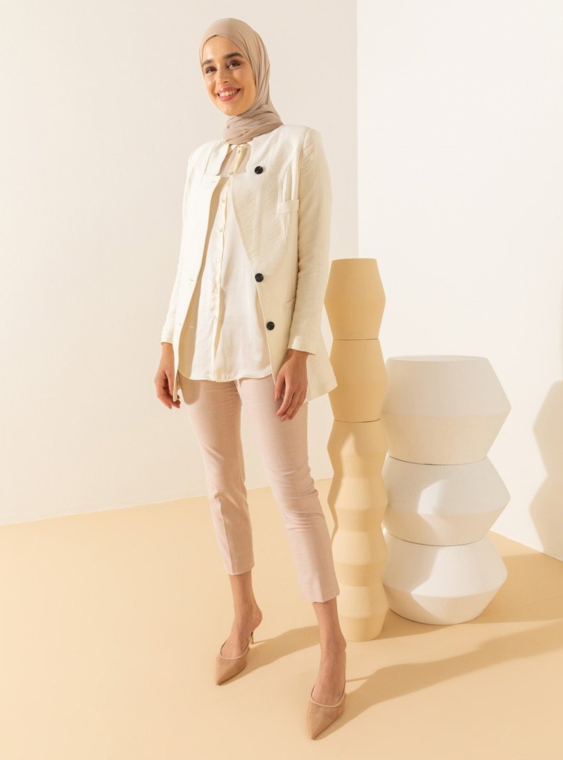 SENSE Ekru Düğme Detaylı Blazer Ceket