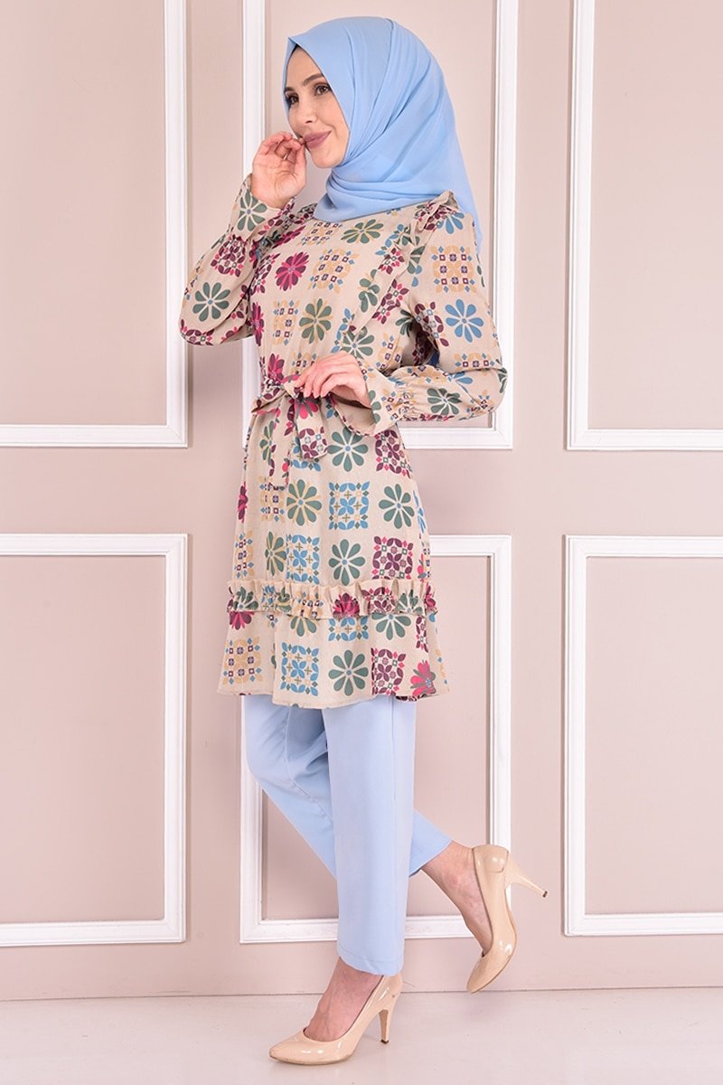 Moda Merve Bebe Mavi Desenli Kombin