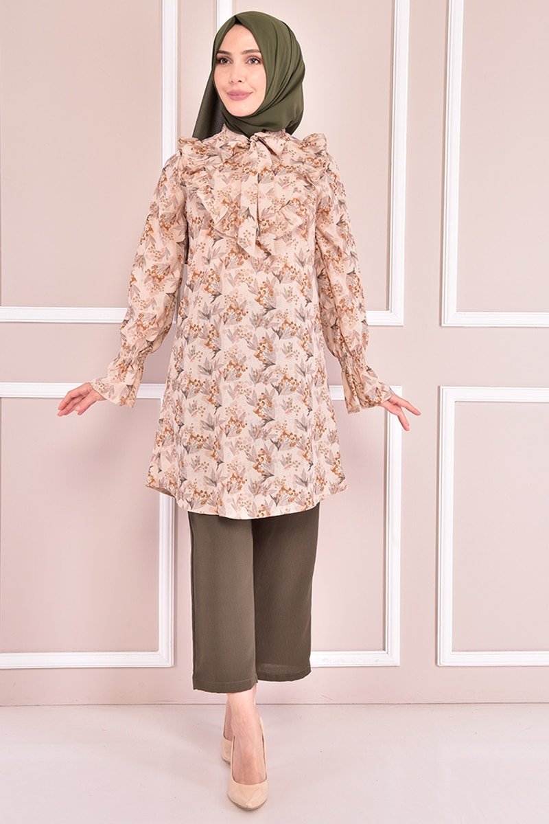 Moda Merve Haki Yaka Bağcıklı Kombin