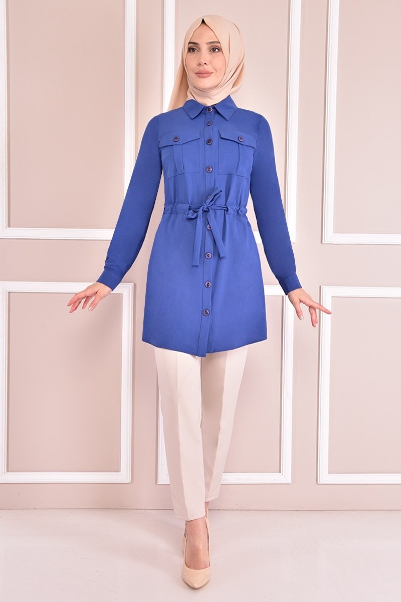 Moda Merve İndigo Düğmeli Tunik